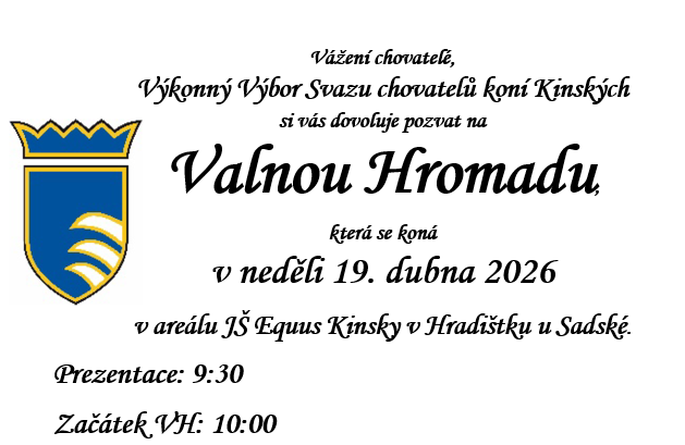 Vítejte na stránkách svazu chovatelů koní Kinských - zlatých koní z Čech, jak se jim přezdívá. Původní české plemeno lehkých, teplokrevných, sportovních koní z chovu rodu Kinských.